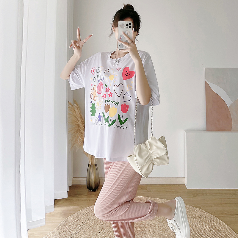 Áo thun nữ ngắn tay, hot trend, phông trắng kiểu Nhật, họa tiết graffiti, form rộng, cotton - ATN002