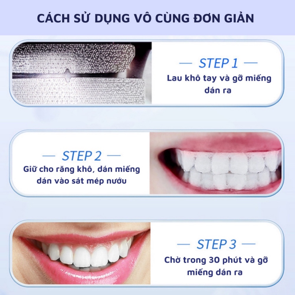 • Miếng dán trắng răng rất tiện lợi và dễ sử dụng: Bạn có thể làm trắng răng ngay trong lúc đi bộ, nói chuyện và làm việc...
