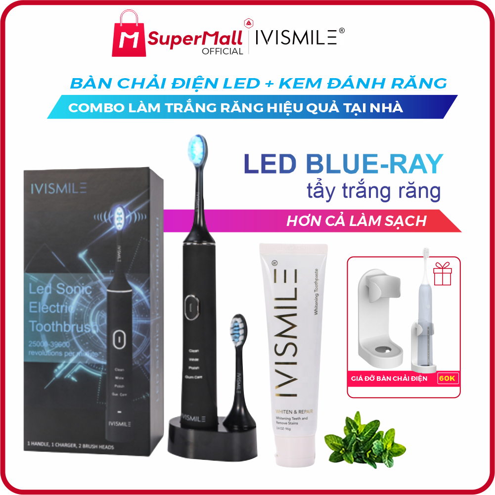 Đặc biệt bất ngờ khi cũng trong năm 2023 này, IVISMILE cho ra đời dòng bàn chải IVISMILE LED Sonic Pro Electric ToothBrush, một bàn chải điện tích hợp LED tẩy trắng răng 2 trong 1. Nếu như bạn có ý định tẩy trắng răng ngay trong lúc đánh răng thì không có lựa chọn nào tuyệt vời hơn ngoài việc sở hữu Bàn chải điện đèn LED IVISMILE 2 trong 1, bạn có thể vừa đánh răng, vừa làm trắng răng cùng lúc. Với bàn chải LED IVISMILE, SuperMall đưa thói quen chăm sóc răng miệng của bạn trở nên tốt hơn, nhiều lần trong cùng 1 khoảng thời gian !