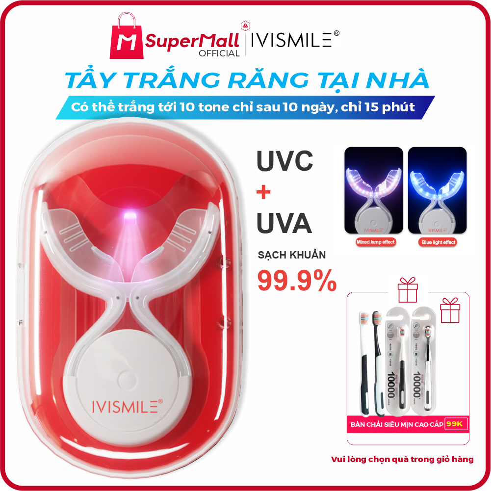 Ngoài ra IVISMILE còn mới ra mắt IVISMILE Extra + UV, là dòng sản phẩm cải tiến mới nhất năm 2023, bổ sung thêm hộp bảo quản đèn LED tẩy trắng răng có tia UV giúp vừa sạc vừa diệt khuẩn, đảm bảo vệ sinh cho mỗi lần sử dụng.