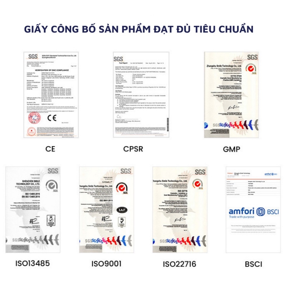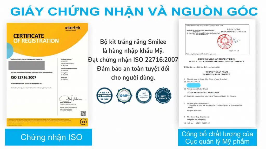 Chứng chỉ của bộ tẩy trắng răng IVISMILE