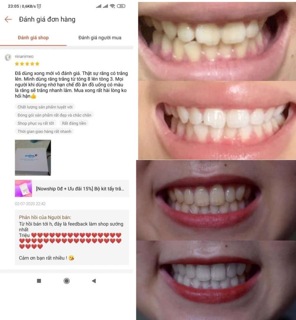 Và bên dưới là tổng hợp các feedback bộ tẩy trắng răng tại nhà từ khách hàng đã mua tại SuperMall.vn