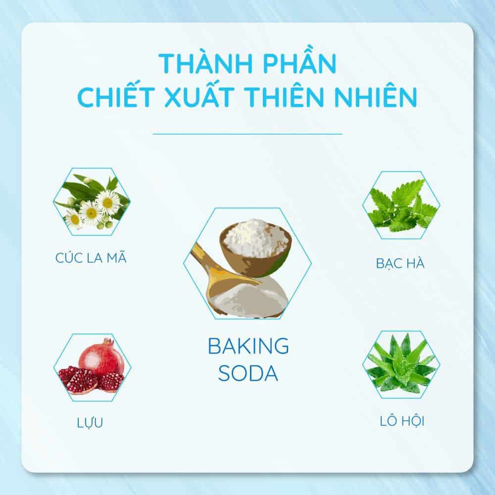 Ngoài ra tinh chất lựu, việt quất, chanh, cúc la mã, lô hội. Các thành phần tinh chất từ các thảo dược thiên nhiên có vai trò làm dịu, bảo vệ men răng đồng thời góp phần hỗ trợ trong việc làm trắng răng.
