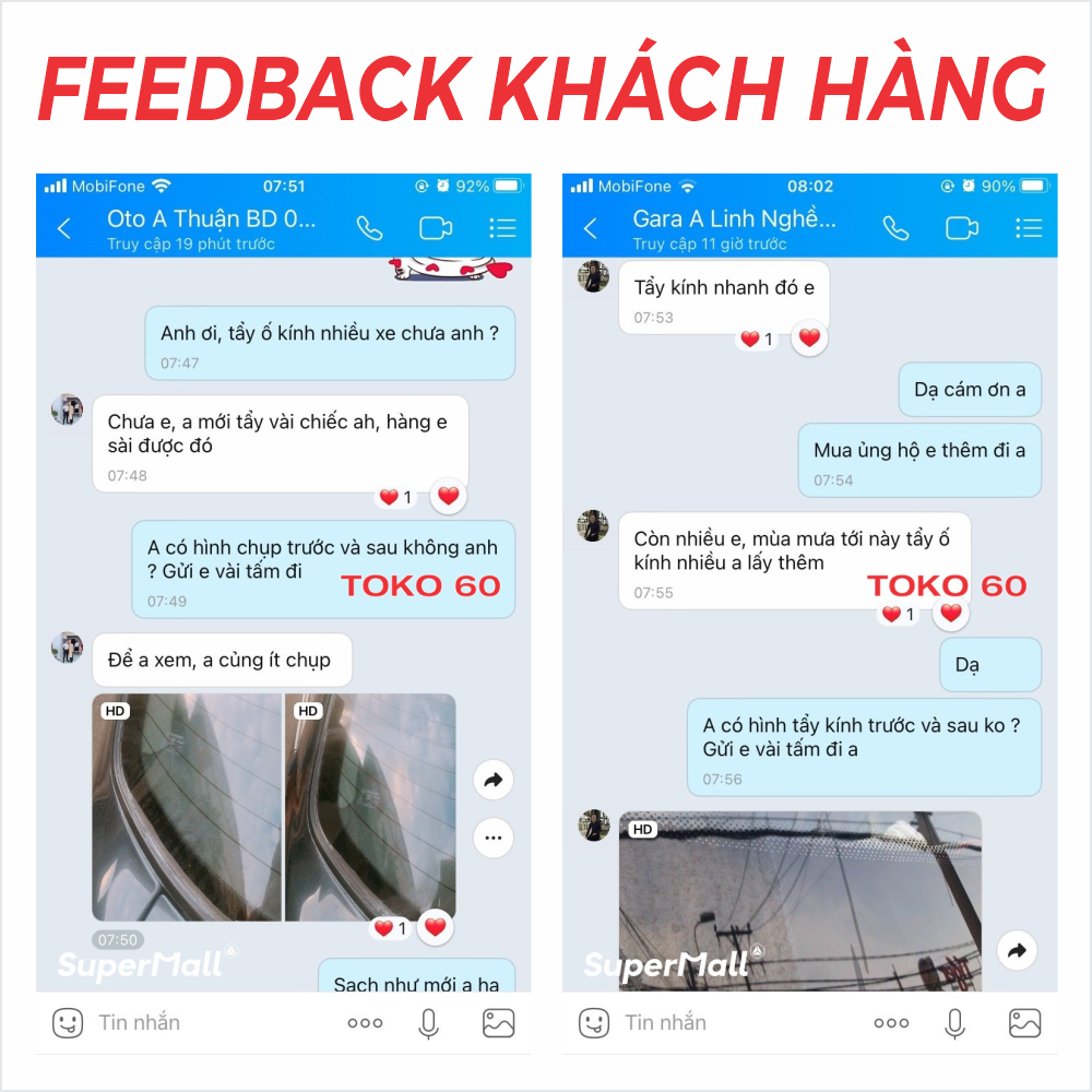 TOKO 60 là dung dịch tẩy ố kính ô tô nhanh và hiệu quả chỉ sau 1 lần sử dụng, đánh bay các vết ố cứng đầu như ố mốc kính, ố cặn canxi, ố màng dầu, ố nhựa cây..., được ưa chuộng nhất tại thị trường Việt Nam.