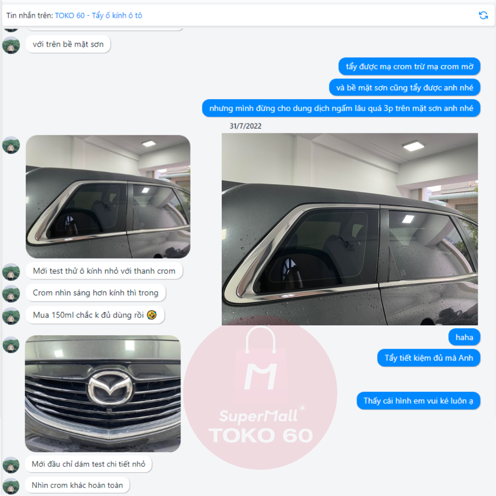 - TOKO 60 an toàn trên bề mặt sơn xe, bạn cũng có thể tẩy cả ố trên sơn, nhưng hạn chế để dung dịch thấm trên bề mặt sơn quá 3 phút, giống như rửa tay bằng xà phòng, mình để lâu không dội thì kiểu gì cũng ăn tay.