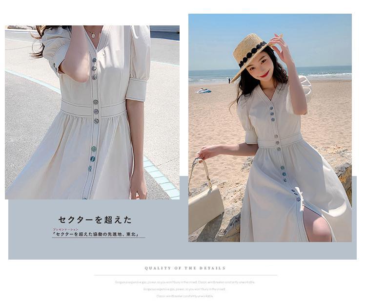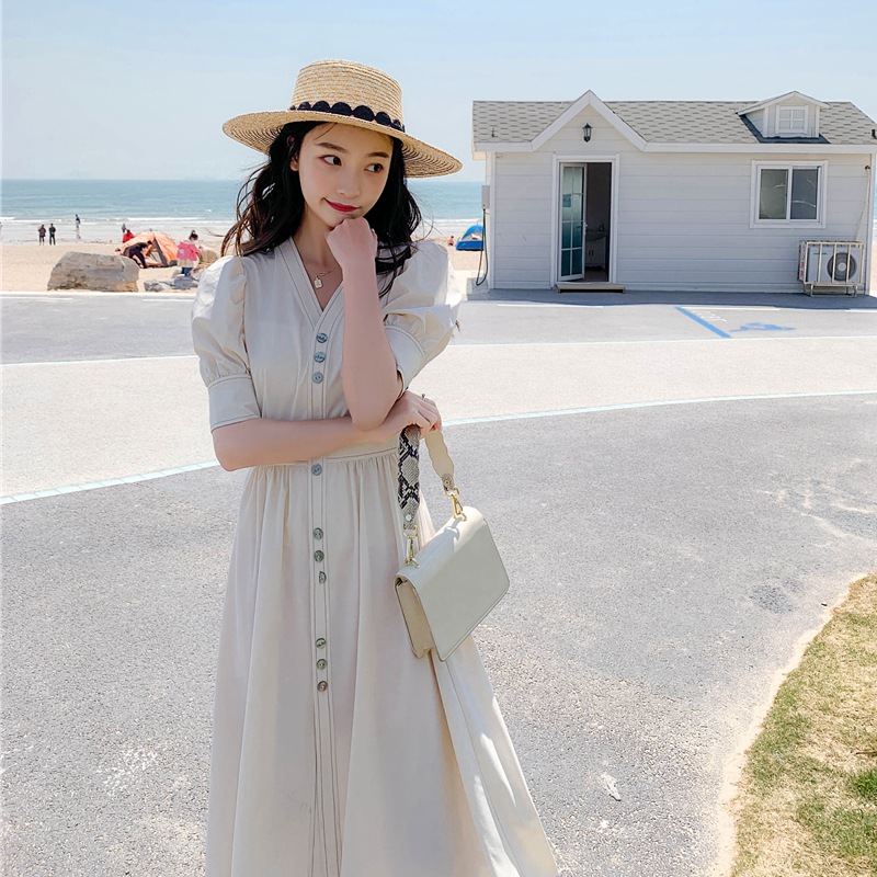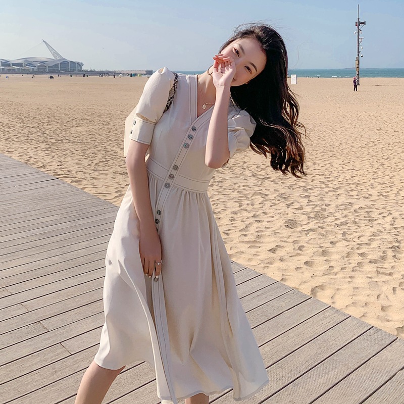 👉Váy cổ điển ngắn tay cổ chữ V, kiểu Pháp, Hàn, tay áo lồng đèn, eo cao, sang trọng, thanh lịch là một lựa chọn hợp lý cho dạo phố, buổi hẹn hò, cafe,...